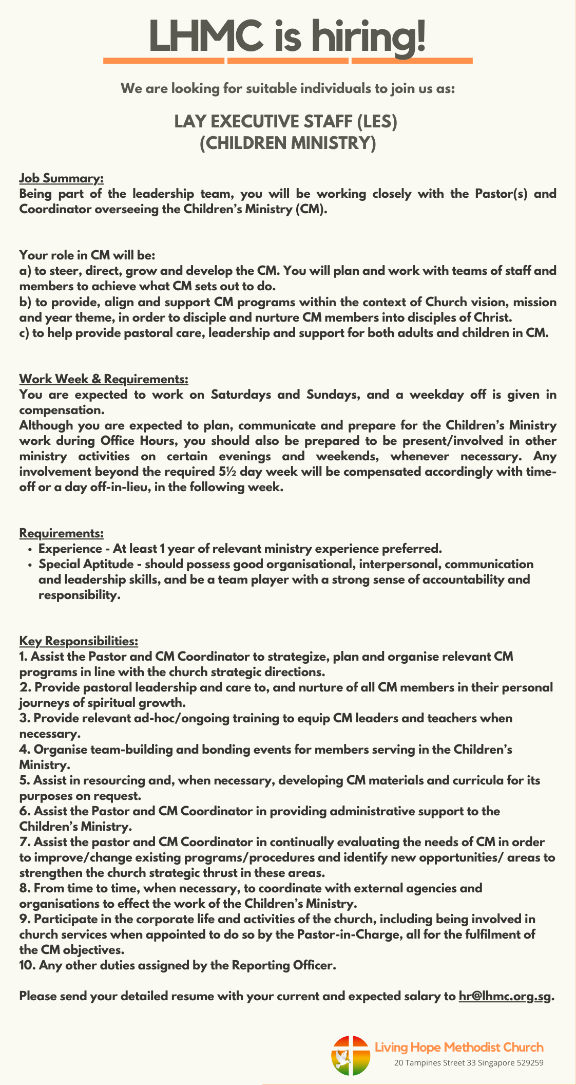 CAREER OPPORTUNITIES AT LIVING HOPE METHODIST CHURCH